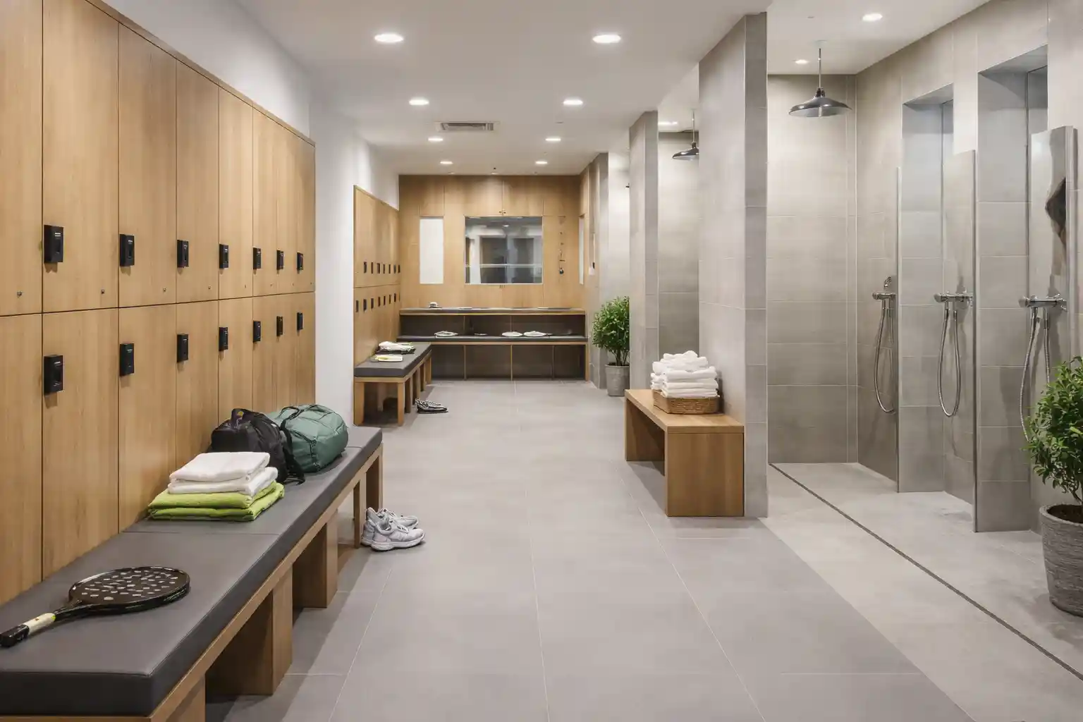 El vestuario del club es un espacio cómodo y funcional donde los jugadores pueden cambiarse, ducharse y prepararse con tranquilidad antes o después del partido.